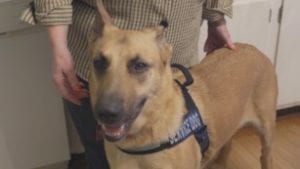 Jeb, is a two year old service dog in St. Clair, Michigan. His current owners, Kenneth, a 79 year old Air Force veteran and retired drywall business owner who suffers from Charcot-Marie-Tooth disease, and his wife Penny, brought Jeb to their home after he was discovered chained inside a shed in early 2016, when he wasn’t yet one years old. His previous owner had died, and the rest of his family didn’t seem to want him, so he was sent to a rescue agency. The volunteer who rescued the Belgian Malinois puppy, Kandie Morrison, immediately thought he would be perfect for her father, Kenneth. Kenneth developed shaky legs later in life due to a neurodegenerative disease, and Dr. Karen Pidick, the family’s veterinarian, worked with Jeb, training him to help with Kenneth’s stability.