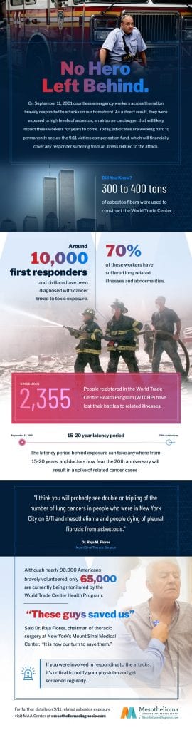 If you were involved in responding to the attacks, it’s critical to notify your physician and get screened regularly, particularly for mesothelioma.