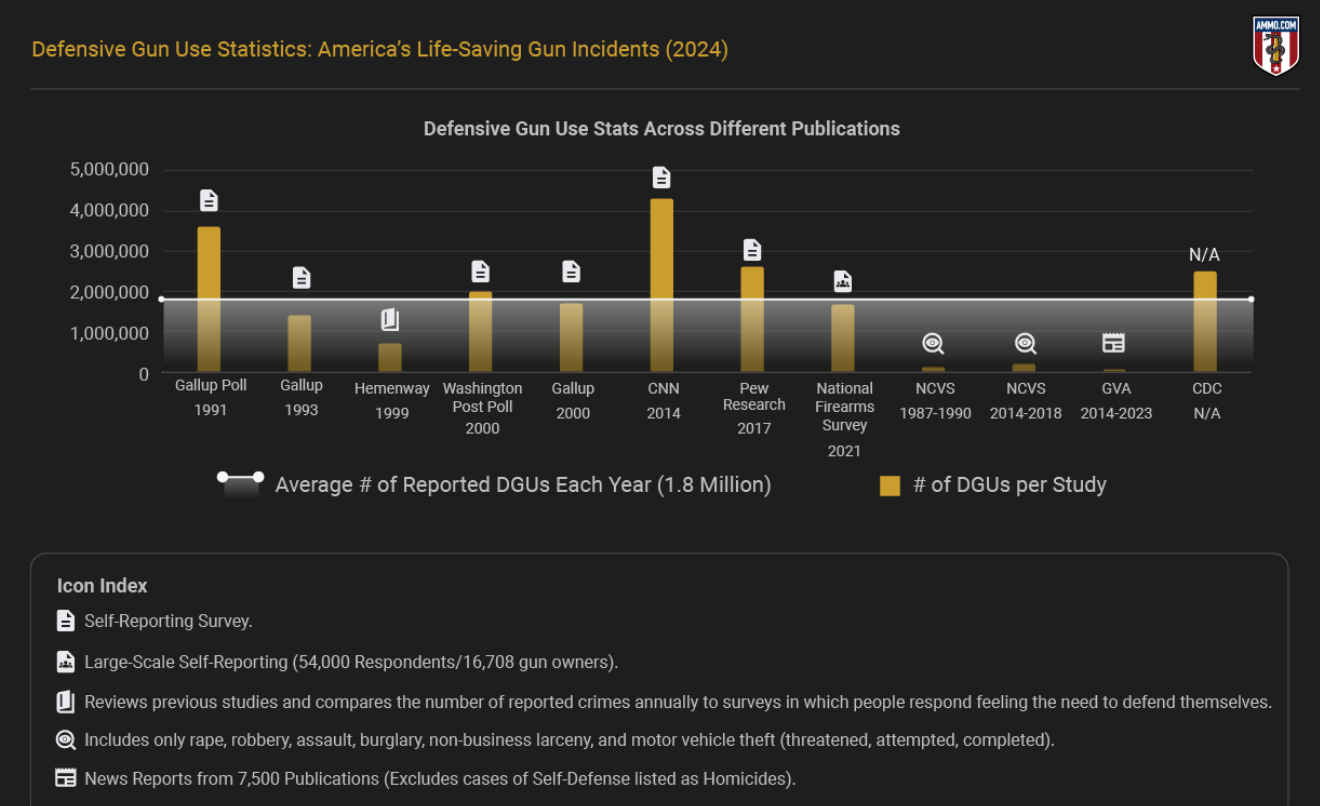 Defensive gun uses are often debated because the information comes from survey data, and many wonder how 2.3 million DGUs are even possible annually.