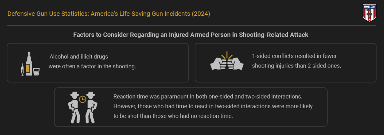 Here are factors to consider regarding incidents where an armed person was injured in a shooting-related attack: