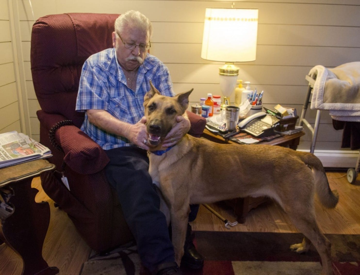 Jeb, is a two year old service dog in St. Clair, Michigan. His current owners, Kenneth, a 79 year old Air Force veteran and retired drywall business owner who suffers from Charcot-Marie-Tooth disease, and his wife Penny, brought Jeb to their home after he was discovered chained inside a shed in early 2016, when he wasn’t yet one years old. His previous owner had died, and the rest of his family didn’t seem to want him, so he was sent to a rescue agency. The volunteer who rescued the Belgian Malinois puppy, Kandie Morrison, immediately thought he would be perfect for her father, Kenneth. Kenneth developed shaky legs later in life due to a neurodegenerative disease, and Dr. Karen Pidick, the family’s veterinarian, worked with Jeb, training him to help with Kenneth’s stability.