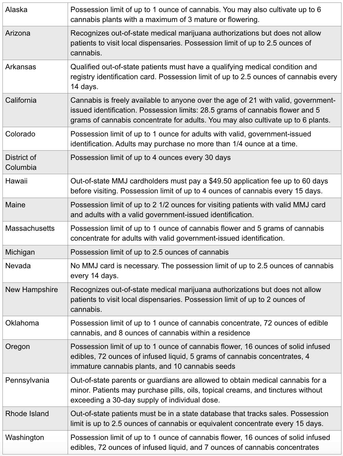 MMJ card reciprocity programs allow you to use your medical marijuana card out of state. There are currently 17 states that accept out-of-state marijuana authorizations. Each jurisdiction has its own set of conditions for MMJ card reciprocity.