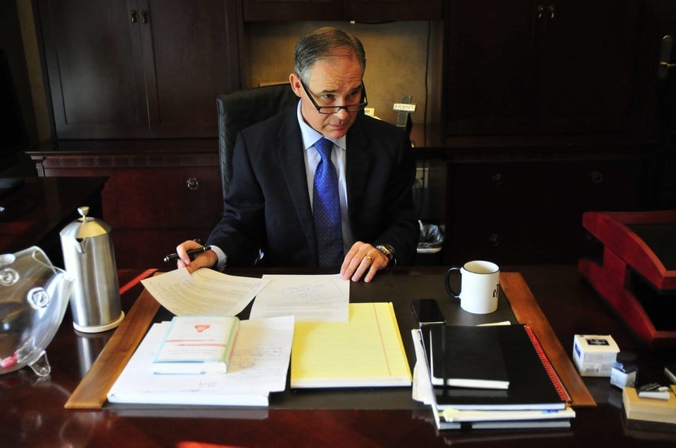 Pruitt’s decision to engage only in face-to-face meetings was partially in response to public disclosure of his emails by the New York Times in 2014. The publication demonstrated how Pruitt and other attorneys general had worked with the oil and gas industry to oppose Obama administration environmental safeguards. Thousands of pages of additional email from his time as Oklahoma’s attorney general were later released, which proved Pruitt offices was in cahoots with Devon Energy, a major oil and gas company headquartered in Oklahoma City.