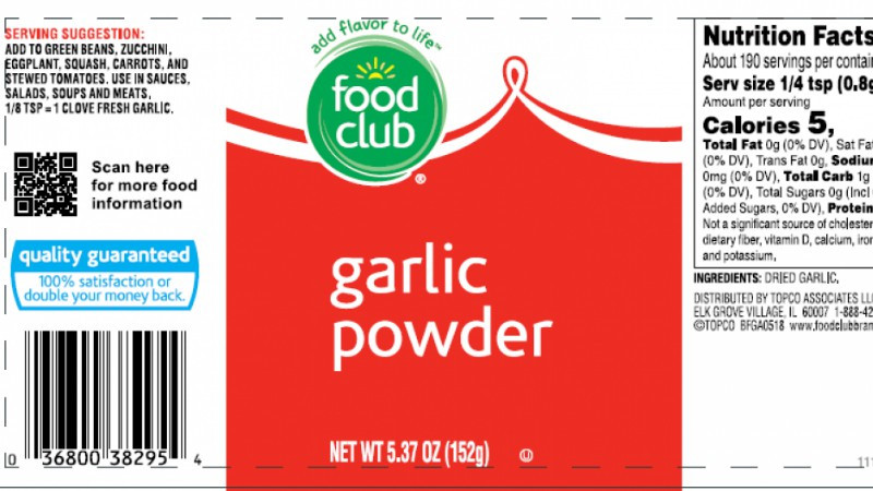If you’re a fan of cooking, you probably have a nice supply of herbs and spices. Unfortunately, the FDA just announced a recall for a popular spice, garlic powder, over concerns certain packages might be mislabeled and contaminated with a known allergen. According to the federal agency, B&G Foods issued a recall for certain 5.37 ounce bottles of Food Club Garlic Powder because “instead of the product promised, the bottle of garlic powder may actually contain bacon-flavored bits.” To make matters worse, the “bacon bits contain soy, an allergen that is not typically in garlic powder and is not declared on the label.” The FDA states: