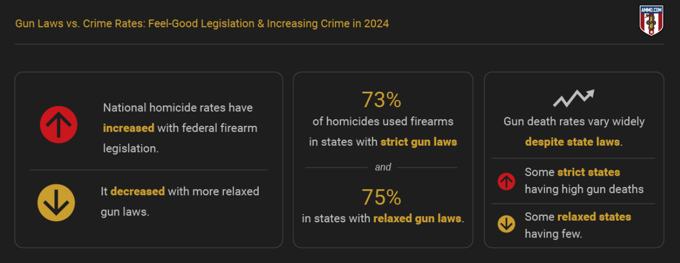 With thousands of active gun laws in the U.S., homicide rates have reached levels not seen since 1993. Despite media and gun lobby claims, “common sense” gun legislation is neither common sense nor productive.