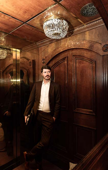 Man in suit with graph with upward trend superimposed; image by Geralt, via Pixabay.com.
