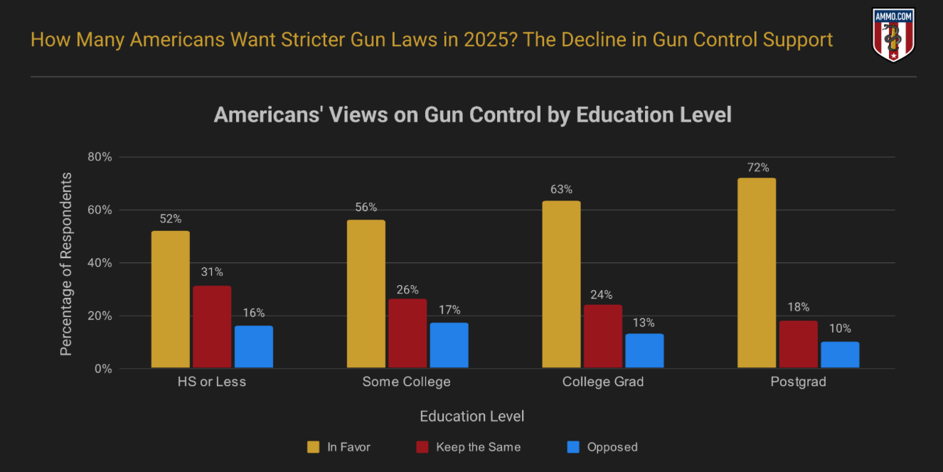 How Many Americans Want Stricter Gun Laws by Education Level?