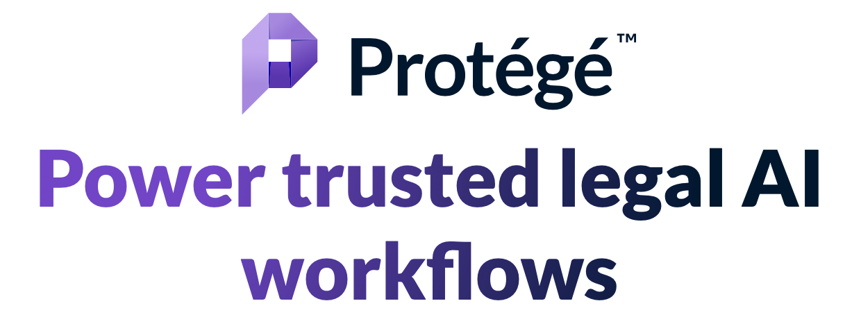 Protégé logo with Power trusted legal AI workflows under it; image courtesy of LexisNexis.
