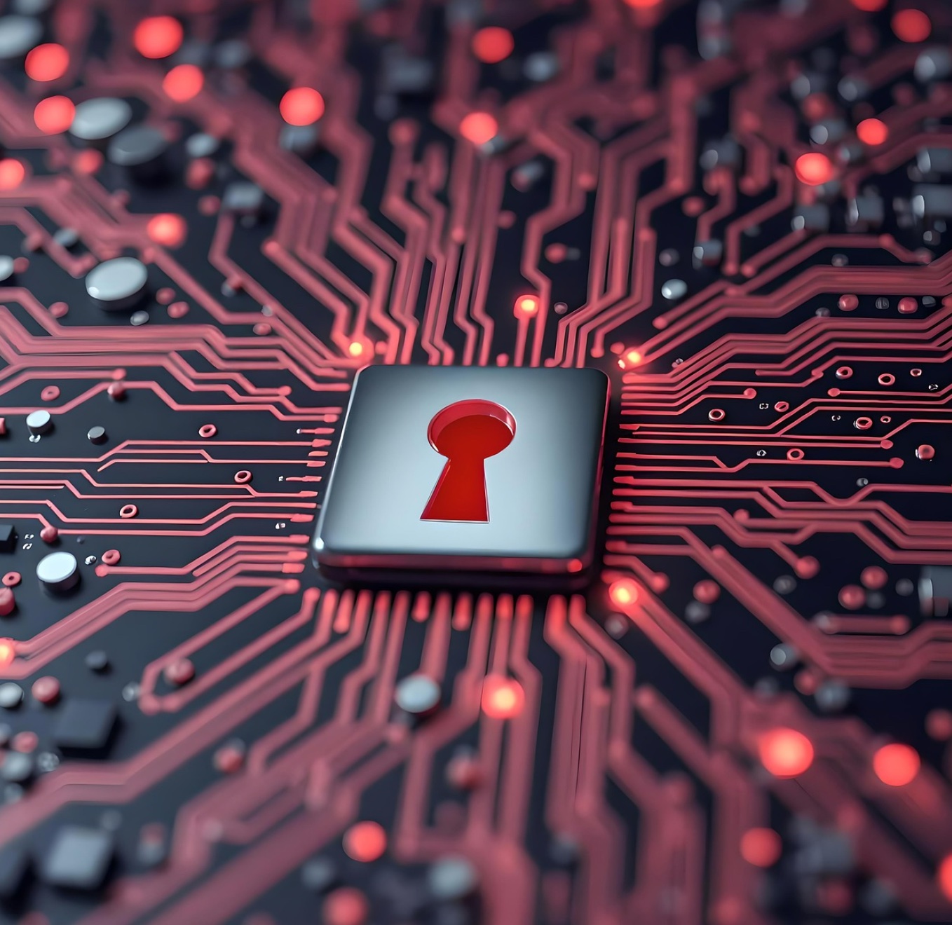 Data security - keyhole on circuit board; image by Joa70, via Pixabay.com.