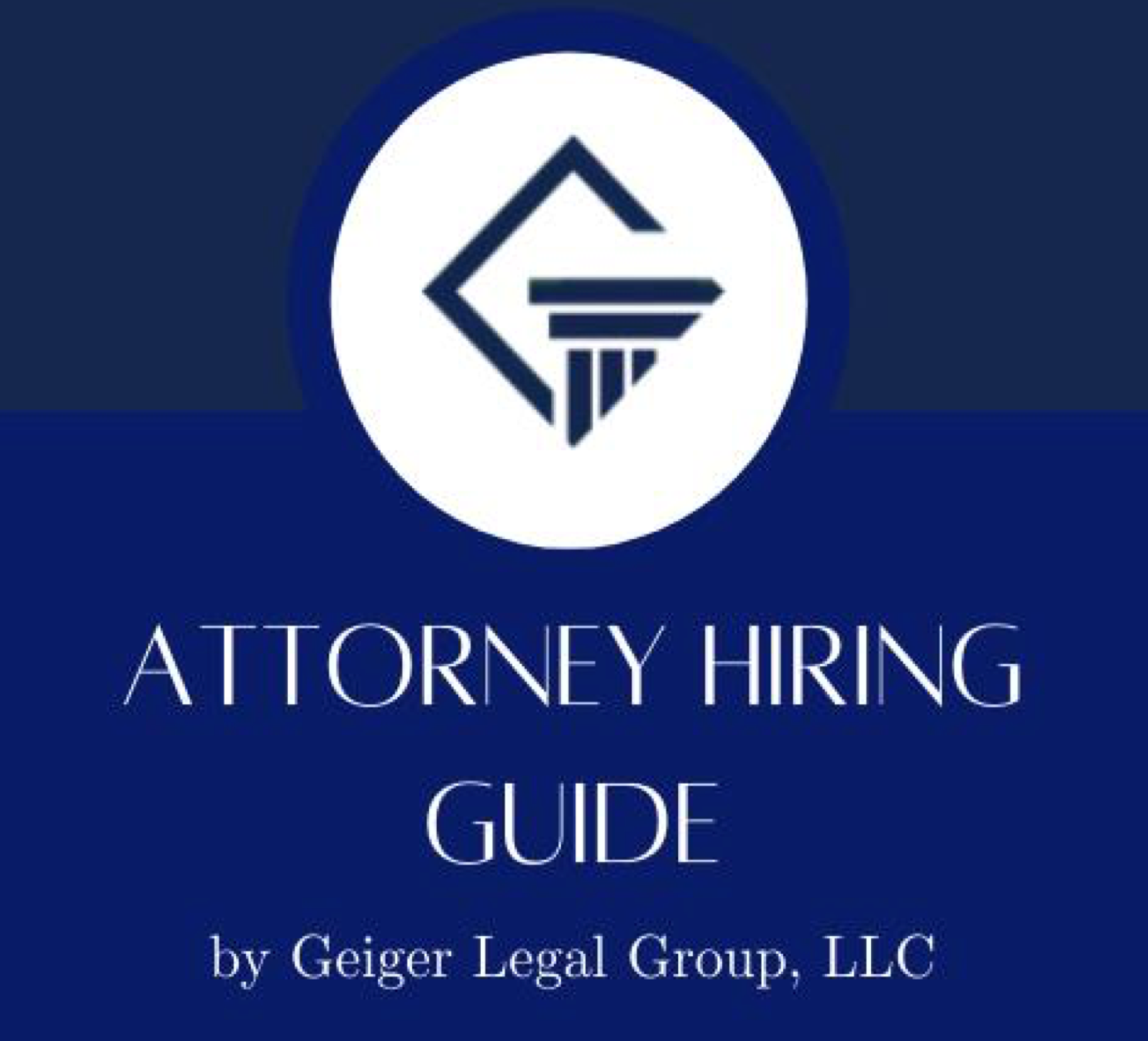 Attorney Hiring Guide title page, courtesy of Geiger Law Group, LLC.